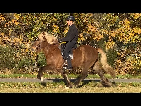 IS2018258184 Glóey frá Hólkoti - Stute - Brunwindfarben mit Stern & Schnippe - Fünfgänger - *2018 - Stm ca. 138cm Glóey – diese außergewöhnlich schöne, 2018 geborene braun-windfarbene Stute ist ein seltener Anblick. Mit ihrem großen Stern, den dunklen Beinen und dieser schimmernden Fellfarbe zieht sie jeden Blick auf sich – und wirkt dabei ruhig, klar und präsent. Sie ist fünfgängig veranlagt, mit einem wunderbar natürlichen, leicht zu reitenden Tölt, einem aktiven, energievollen Trab, gutem Schritt und einer harmonischen Galoppade. Ein Pferd mit Balance, Ausdruck und der seltenen Mischung aus Eleganz und Gelassenheit. Vom Temperament her liegt Glóey im angenehmen mittleren Bereich – sie reagiert fein auf ihren Reiter, lässt sich vorwärts treiben, bleibt dabei aber ruhig und aufmerksam. Ein Pferd, das zuhört – und immer in Verbindung mit seinem Menschen bleibt. ✨ Ideal geeignet für • Reiterinnen, die Harmonie und Sicherheit suchen • Wiedereinsteigerinnen oder Reiterinnen, die noch etwas unsicher sind • alle, die ein Pferd möchten, das sowohl Spaß als auch Vertrauen schenkt Glóey ist unerschrocken, freundlich und neugierig – Plane, Mülltonne, Fahrräder, hupende Autos oder der Kuhstall, nichts bringt sie aus der Ruhe. Sie geht mit und ohne Sattel, mit und ohne Zügel – immer zuverlässig, aufmerksam und gelassen. Im Gelände zeigt sie sich klar, sicher und mit weichem Bewegungsfluss – ein Reitgefühl voller Ruhe und Leichtigkeit. 💛 Eine junge Stute mit Ausdruck, Kraft und Charakter – elegant, fein und bereit, zu gefallen. Wenn dich Glóey genauso fasziniert wie uns, dann melde dich gern für ein persönliches Beratungsgespräch oder einen Proberitt.