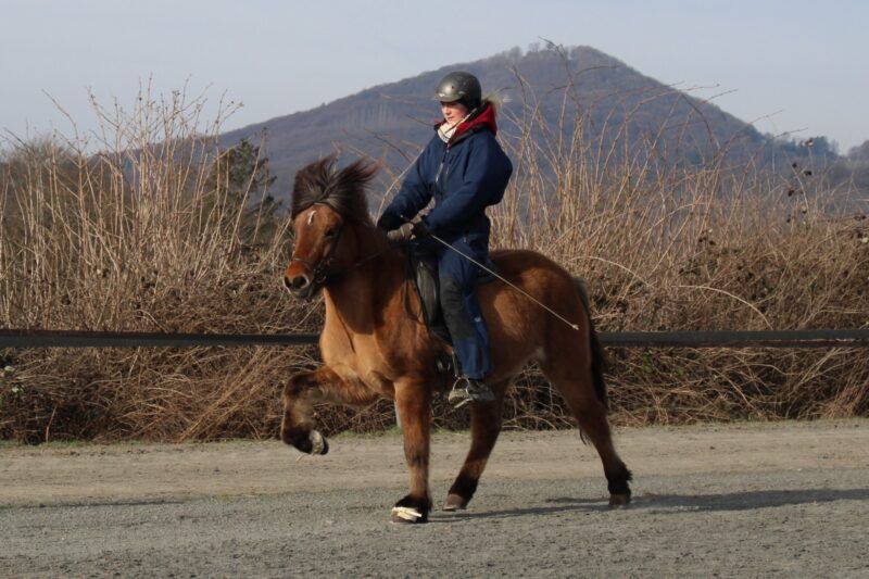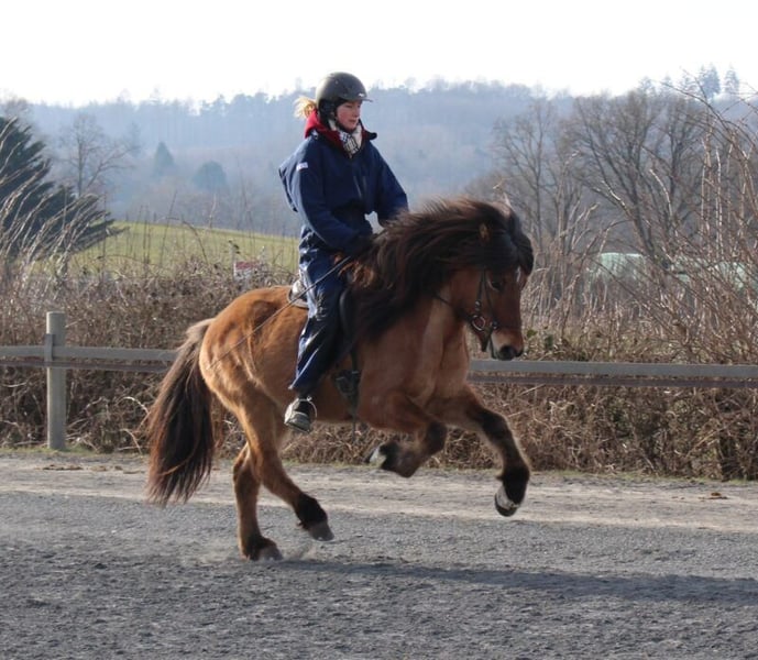 Móinn ist ein achtjähriger, stabil sportlich gebauter Wallach mit einer auffallend hübschen Erscheinung, viel Ausdruck und einer dichten, langen Mähne, die sofort ins Auge fällt. Ein Pferd mit echter Präsenz. Als viergängig gerittenes Pferd bringt Móinn jede Menge Tölt mit, der sich angenehm leicht reiten lässt und dabei ansprechend hohe sowie weite Bewegungen zeigt. Mit leichten Boots fällt es ihm besonders leicht, direkt ins Gleichgewicht zu kommen. Sein Trab zeigt sich schwungvoll mit weiten, ansprechenden Bewegungen, während der Galopp gut gesprungen ist und eine Bergauftendenz aufweist. Ein echtes Highlight ist jedoch sein Schritt: weit übertretend, raumgreifend und taktklar. Dieser „gigantische“ Schritt macht Móinn insbesondere im Hinblick auf Gangprüfungen zu einem äußerst spannenden Kandidaten. Móinn ist fein an den Hilfen, schnell in seinen Reaktionen und aufmerksam gegenüber seinem Reiter. Durch weiteres gezieltes Training bringt er beste Voraussetzungen mit, sich zu einem ansprechenden Turnierpferd zu entwickeln. Gleichzeitig bietet er all das, was man sich von einem gehobenen Freizeitpartner wünscht – sei es ein ausgedehnter Töltritt durch den Wald oder konzentrierte Arbeit auf dem Platz. Genau diese Vielseitigkeit macht ihn so besonders. Im Umgang zeigt sich Móinn absolut unkompliziert und angenehm im Temperament. Er wurde bereits problemlos in der Reitschule unter jugendlichen Reitschülern eingesetzt. Dennoch benötigt er einen Reiter, der sicher und klar an den Hilfen ist. Für reine Reitanfänger ist er nicht geeignet, da er sonst beginnt, eigene Entscheidungen in der Linienführung zu treffen. Móinn ist ein arbeitswilliges, leistungsbereites Pferd, das gefördert und gefordert werden möchte und Freude daran hat, weiter geformt zu werden – ganz gleich, ob mit Blick auf den Turniersport oder als ambitioniertes Freizeitpferd. Seine Ausbildung begann als Jungpferd am GPZ Aegidienberg. Zu Beginn zeigte er Schritt, Tölt und Galopp und lernte im Laufe seiner Ausbildung den Trab, der sich heute in guter Qualität präsentiert. Im Gelände kennt Móinn sowohl das Ausreiten alleine als auch in der Gruppe und zeigt sich dabei stets unerschrocken und zuverlässig. Sein Vater ist der Ausnahmehengst Merkur von Birkenlund, ein extrem erfolgreicher Viergänger und Tölter sowie mehrfacher Weltmeister, der für Qualität, Rittigkeit und beeindruckende Gänge steht. Auch mütterlicherseits bringt Móinn beste Voraussetzungen mit: Seine Mutter Mylla frá Hrauni, eine Tochter des Ehrenpreishengstes Ótur frá Sauðárkróki, dieser überzeugt nicht nur durch seine Vererbungskraft, sondern auch durch herausragende FIZO-Ergebnisse mit 8,5 für Tölt und 9,5 für Pass. Diese Kombination spiegelt sich deutlich in Móinns Gangqualität, seiner Leichttrittigkeit und seinem natürlichen Talent wider. Móinn ist ein Pferd für Reiter, die Qualität, Charakter und Entwicklungspotenzial schätzen. Ob als sportlicher Partner mit Turnierambitionen oder als echtes Luxusfreizeitpferd. Móinn lässt kaum Wünsche offen und wartet auf einen Menschen, der seinen Weg mit ihm weitergehen möchte.