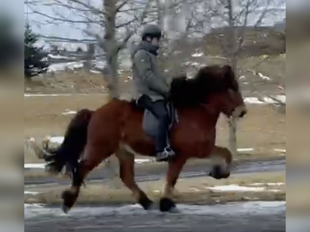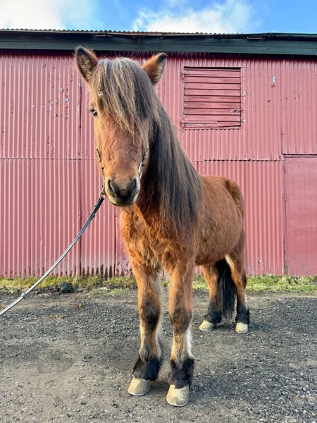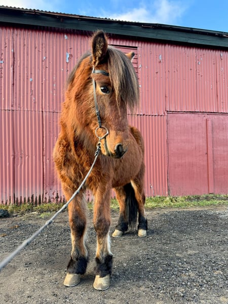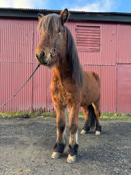 IS2018182794 Color Brown Gender Gelding Sire: Ómur frá Kvistum Dam: Kolfreya frá Holtsmúla 1 Dam's Sire: Orri frá Þúfu Location: Iceland Wonderful gelding with good lineage and DREAM character! I am selling my beautiful brown Ómur son with a heavy heart. He is out of a tested Orri daughter, who was rated 7.92. Kolfreya has already produced many very nice offspring. His father is Ómur frá Kvistum, the sire of many great breeding and sport horses. My gelding is extremely friendly and interested in people; he loves to be petted but is by no means pushy. He is about 1.40m tall. He shows an even trot and canter with beautiful movements. As a foal, he exhibited almost exclusively clear-timed tölt. Under the rider, he shows a lot of easy-to-ride tölt, and with more training, he will gain even more speed. Smaller competitions would certainly be possible with more training in the future, as he shows a good upward tendency in his body and also beautiful movements under the rider. He was in professional training for several months last year, where he demonstrated a very friendly, talented, and eager-to-learn attitude. At the moment, he is in the pasture but will be brought back into training soon. More photos and videos can be sent upon request!