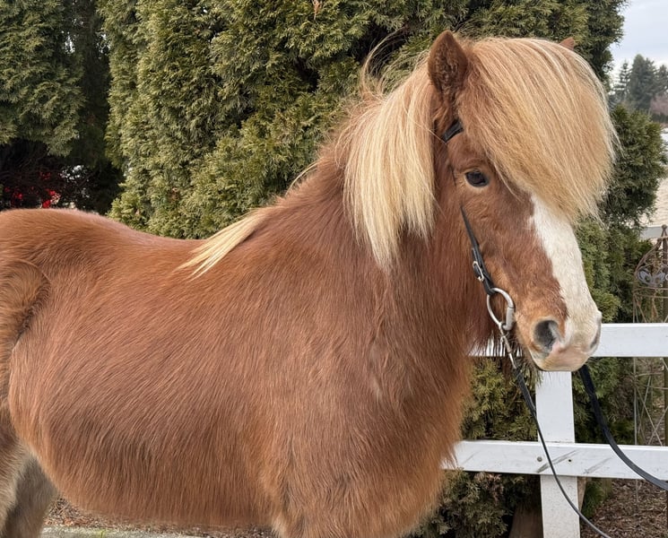 Lotning frá Miðsitju Mare, 1.39 m groß Fuchs mit Blesse und viel Langhaar viergängig geritten *2014 auf IS registriert AKU vorhanden inklusive Röntgenaufnahmen ✅ beschlagen, entwurmt ✅ V: Blær frá Miðsitju 8,64 (Ext 8,29 / Re 8,87)‼️ VV: Arður frá Brautarholti 8,49 (Ext 8,34 / Re 8,60)‼️ M: Lísa frá Kjartansstödum 8,16 (Ext 7,89 / Re 8,35)‼️ MV: Kjarval frá Sauðarkróki 8,32 (Ext 7,94 / Re 8,70)‼️ Lotning ist optisch ein echtes Püppchen. Deshalb trägt sie bei uns auch den Spitznamen „Püppi“. Im Umgang und in der Herde zeigt sie sich jedoch keineswegs zierlich – sie ist in allem äußerst unkompliziert. Ihre Abstammung liest sich für Kenner wie ein Bilderbuch! Eine Tochter des außergewöhnlichen Blær frá Miðsitju, mit durchgehend geprüfter Ahnentafel, in der zahlreiche Einzelnoten von 9,5 und 9 bei den Reiteigenschaften zu finden sind. Das macht sie auch für die Zucht äußerst interessant. Unter dem Sattel zeigt die schöne Stute ein sehr angenehmes Temperament, mit vier klar abgegrenzten Gangarten und großem Willen, mit dem Reiter zu arbeiten. Sie ist sehr gut ausgebildet und besticht durch ihren ausgeglichenen Charakter, den alle Nachkommen von Blær mitbringen. Sie wird dem zukünftigen Besitzer viel Freude bereiten – ganz gleich, in welchem Bereich. Ob als tolles Freizeitpferd, Partner für den Einstieg in den Sport oder als Zuchtstute mit Top-Ahnentafel: Lotning ist das Allround-Paket. Aufgrund ihrer unerschrockenen, ruhigen Art eignet sie sich auch bestens für weniger erfahrene Reiter, Jugendliche oder Kinder. In neuer Umgebung und bei neuen Situationen zeigt sie sich absolut unbeeindruckt und überzeugt durch ihre Souveränität. Sie ist ein 100%iges Spaßpferd für die ganze Familie oder den ambitionierten Freizeitreiter. Ihre Gänge sind deutlich abgegrenzt, Tölt leicht zu reiten und sehr bequem im Sitz. Sie ist gut ausgebildet und bringt mit ihren 12 Jahren viel Erfahrung als Reitpferd mit. Wer die schöne Lotning kennenlernen und testen möchte, kann dies nach Absprache gerne bei uns in A-5221 Lochen am See tun.