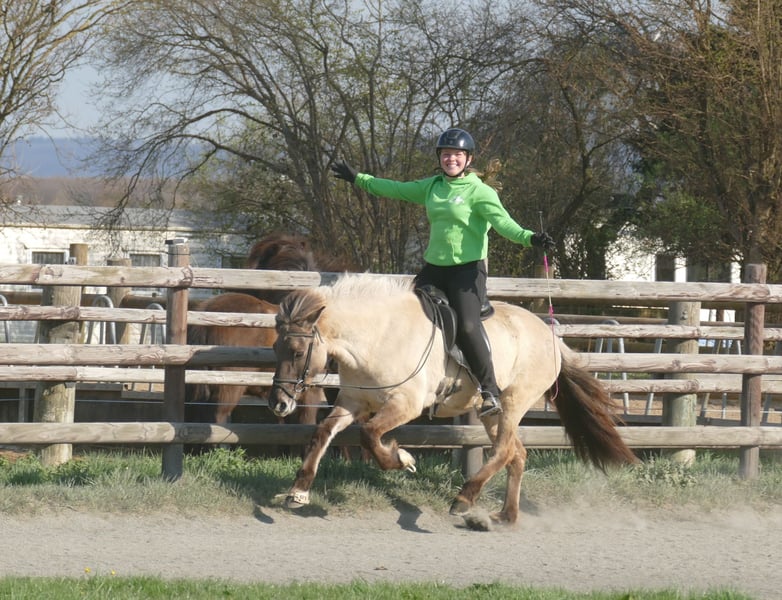 Fenna ist eine charmante Mausfalbstute, die mit ihrer soliden Ausbildung und ihren vier sicheren Gängen begeistert. Ihr Tölt ist leicht zu reiten, locker vorwärts und angenehm zu sitzen. Im Trab zeigt Fenna eine schöne Form, bleibt dabei sicher und bewegt sich mit harmonischen Tritten. Ihr Galopp ist ein wahres Highlight – er ist äußerst bequem, gleichmäßig und gut bergauf. Im Gelände ist Fenna unerschrocken und geht sowohl alleine, als auch in der Gruppe gerne raus. Sie lässt sich immer regeln und macht wirklich Spaß, kann auf dem Rückweg im Schritt manchmal was flott sein. Ob für Ausritte oder vielseitige Herausforderungen – Fenna ist das perfekte Pferd für Freizeit und mehr! Ein rundum verlässlicher Partner, der mit seinem klaren Charakter und seiner tollen Ausbildung überzeugt. Fenna hat bei uns auch eine ganze Zeit zuverlässig als Schulpferd fungiert, wurde dann aber in private Hände verkauft, da wir zu viele Schulpferde hatten und sich die aktuelle Besitzerin verliebt hat. Da bei dieser sich die Umstände unvorhergesehen leider geändert haben, ist Fenna nochmal auf der Suche nach dem passenden Zuhause. Daher wird sie von Privat im Auftrag verkauft.