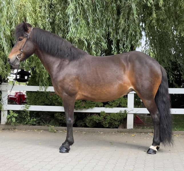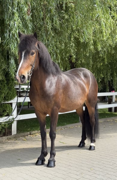 Spyrna frá Fremri-Fitjum Mare, 1.46m tall very sturdy build Four-gaited Color: Chestnut with blaze and sock Vet check including X-rays available✅ Teeth done 05/24✅ Dewormed, shod, VAT can be shown Export was 04/2024, free of eczema Sire: Seifur frá Miklagarði 7.34 (Ext 7.67 Re 7.12) Dam's sire: Águstínús frá Melaleiti 8.61 (Ext 8.13 Re 8.93) Dam: Staka frá Háleggsstöðum Dam's dam: Draupnir frá Vogum (Ext 7.98) WOW, Spyrna! An incredibly beautiful mare with a presence that one desires in sports. The tall mare combines powerful gaits, character, looks, and pure riding pleasure in one. All doors are wide open with Spyrna. Looking for a teacher? Enjoy great gaits in your leisure time? Start four-gait, dressage, and tölt in sports? Want to attend courses? Looking for a children's and youth sport horse? Spyrna would be the answer to all these questions. She is very well trained, offers four clearly separated gaits, tölt with very good tempo variance, and in the terrain, she is absolutely fearless both alone and in a group. New environments are absolutely no problem for her. This mare has an aura under saddle that makes you exclaim "Wow!" She practically shapes herself and presents herself breathtakingly beautiful. She is familiar with mixed herds and individual boxes - she was completely uncomplicated in both forms of housing. Anyone who wants to get to know and try this beautiful mare is welcome to do so by arrangement with us in A-5221 Lochen am See. Current price range is between 15,000 and 17,000 Euros.