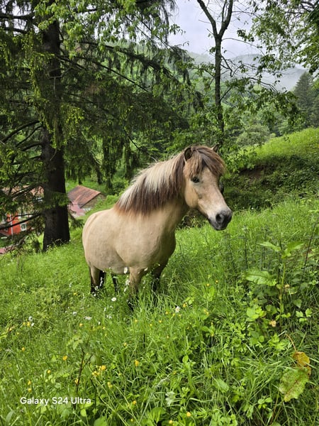 For sale: Stunning Icelandic mare with full papers, born in France in 2011. Very gentle and a perfect confidence booster for children and beginner riders! Very comfortable to ride, she has a very good walk, and with a less confident rider, she will walk slowly behind, while with a more experienced rider, she will enjoy leading the way. She is suitable for both alone and group outings, always willing and in a good mood. She also knows how to be lunged with a rider on board. Sometimes we let her loose, and she follows us calmly. Blomey is confident and fearless in all situations. She comes willingly to the gate when called, loads easily into a trailer or truck, and travels very well. We are selling her because our son has grown up and can now ride our younger horses. She has foaled before with her breeder (she has not changed owners multiple times; we found her directly with her breeder when she was 9). Regarding gaits, she has a very good, active walk (we live in the mountains). She also has a good tölt, comfortable but not a competition-level gait. She trots very well, and her canter is small, comfortable, and reassuring. We have seen her perform a flying amble once by chance, although we have never trained this gait specifically. She is shod and has never had health issues, including no dermatitis. This mare is very endearing and could bring happiness to a young rider. She is respectful and currently ridden in a simple snaffle bit. She is up to date on vaccinations and regularly dewormed. We speak German.
