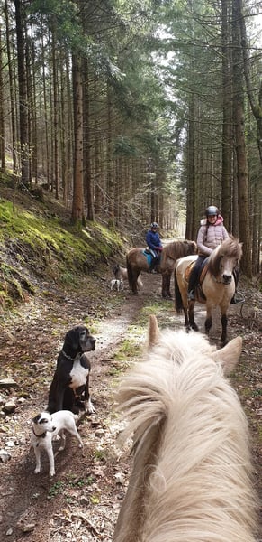 Vends superbe jument islandaise pleins papiers, née en France en 2011, très gentille, une assurance vie pour les enfants et les cavaliers débutants! Très confortable, elle a un très bon pas, et avec un cavalier peu sûr de lui, elle marchera doucement derrière alors qu'avec un cavalier plus expérimenté elle aura plaisir à tracer devant. Elle sort seule ou en groupe, elle est volontaire et toujours de bonne humeur, elle sait aussi être promener en longe avec un cheval monté. Il nous arrive de la lâcher al et elle nous suit tranquillement. Blomey passe partout et n'a peur de rien. Elle vient volontiers au portail quand on l'appelle, embarque et voyage très facilement en van ou en camion. Nous la vendons car notre fiston a grandi et peut a présent monter nos plus jeunes chevaux. Elle a déjà pouliné chez son éleveur (elle n'a pas fait plusieurs maisons, nous l'avons cherché chez son éleveur quand elle avait 9 ans). Concernant les allures, elle a un très bon pas, très actif, (nous habitons en montagne). Elle a un très bon tölt, confortable (ce ne sont cependant pas des allures de compétition). Elle trotte aussi très bien. Elle a un petit galop confortable et rassurant. Nous l'avons déjà vu filer a l'amble volant cependant c'était par hasard car nous n'avons jamais travaillé cette allure. Elle est ferrée et n'a jamais eu aucun souci de santé. Pas de dermite. C'est une jument très attachante, elle pourra faire le bonheur d'un jeune cavalier, elle est respectueuse et montée à présent en mors simple. Elle est a jour de ses vaccins et régulièrement vermifugée. Wir sprechen deutsch