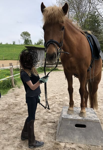Wir suchen für unsere wunderschöne Islandstute (geb. 2011, ca. 1,42 m) ein liebevolles neues Zuhause. Die charmante Fünfgängerin überzeugt vor allem durch ihren außergewöhnlich freundlichen, menschenbezogenen Charakter und ihre große Freude an der Arbeit mit Menschen. Unsere Stute ist rundum gesund bis auf einen Befund an der Halswirbelsäule. Aufgrund dessen wird sie von uns nicht mehr regulär geritten. Aktuelle CT-Befunde aus der Klinik liegen selbstverständlich vor und können eingesehen werden. Laut Tierarzt handelt es sich nicht um einen erblichen Befund, weshalb sie eventuell auch für die Zucht interessant sein könnte. Sie selbst war als Fohlen prämiert, hatte bisher jedoch noch kein Fohlen. Abstammung: V: Kongur v. Lichtenberg VV: Sjoli fra Dalbae M: Nott v. Sydri-Bru MV: Aspar v. Saudarkroki Im Trab zeigt sie auf dem Zirkel eine leichte Lahmheit. Charakterlich ist sie ein echtes Herzenspferd: neugierig, aufmerksam, sehr menschenbezogen und stets freundlich im Umgang. Sie kommuniziert fein und arbeitet gern mit Menschen zusammen. Deshalb können wir sie uns besonders gut für pferdegestütztes Coaching oder Therapiearbeit ohne Reiter vorstellen. Auch im Umgang mit Kindern zeigt sie sich sehr lieb und geduldig. Sie kennt und liebt Bodenarbeit, beherrscht verschiedene klassische Übungen an der Hand und einige kleine Kunststücke. Außerdem kennt sie Langzügelarbeit und Fahren vom Boden. Durch ihre Lernfreude und Motivation lässt sie sich vielseitig beschäftigen. Haltungsseitig ist sie robust und unkompliziert (Heu, stundenweise Weide, Mineralfutter). Sie lebt aktuell im Offenstall in einer kleinen Gruppe, ist eher rangniedrig und kennt sowohl gemischte Herden als auch reine Stutenherden. Kein Ekzem, kein Asthma. Rassetypisch sollte sie nicht dauerhaft 24 h auf der Weide stehen. Wir wünschen uns für sie einen wertschätzenden Platz mit viel menschlicher Zuwendung, an dem sie weiterhin Aufgaben und Beschäftigung bekommt. Weitere Informationen geben wir sehr gern persönlich auf Anfrage.