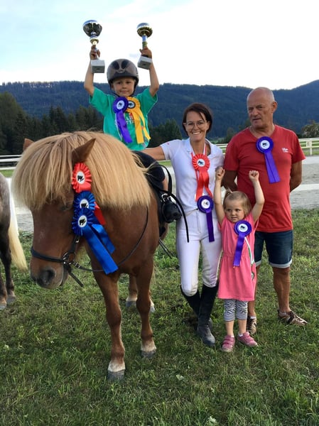 AT2009220959 Leiding ist 17 Jahre alt und eine echte Perle. Eine Freude für jeden feinen Reiter und ein absoluter Lehrmeister für Kinder und Jugendliche. Sie ist sehr sensibel im Sinne von leichtrittig, ganz fein, reagiert aufmerksam auf Sitz, Atmung und Stimme aber trotz ihres sensiblen Charakters ist sie absolut Bomb-proof. Leiding hat vor nichts Angst und schreckt sich vor nichts und niemandem. Verkehr, Traktoren, Schneepflug, Zug - alles kein Problem. Sie marschiert immer und überall zielstrebig voran und ist ein Fels in der Brandung. Alleine als auch in der Gruppe. Von der Gangverteilung ist sie ein sehr ausgeglichener Fünfgänger. Ganz leicht zu reitender Tölt, sicherer Trab, bequemer Schritt. Galopp ist eher gelaufen aber vor allem im Gelände gut zu reiten. Leiding hat einen bombensicheren Rennpass, den sie liebt und locker im Tölt auflöst. Bei erwachsenen Reitern geht sie flott und fleißig vorwärts, immer motiviert mit gutem Vorwärts. Kinder trägt sie mit besonderer Vorsicht und passt richtig gut auf. Auch im Umgang ist sie absolut kinderlieb. Sie lässt sich geduldig führen, putzen, Hufe auskratzen, Mähne bürsten, es macht ihr nichts aus, wenn die Bürste auf den Boden kracht oder das Kind neben ihr mitsamt dem Sessel umfällt. Dressurmässig ist sie gut ausgebildet und ein echter Lehrmeister für Schüler/innen: Auf kleinste Hilfen reagiert sie mit Schulter herein, Krupp herein. Sie kann Traversalen im Schritt und Tölt, Schulterherein geht auch im Trab. Leider hat sie eine Heustauballergie und bräuchte deshalb einen Stall der für Allergiker ausgerichtet ist. Mit bedampftem/nassen Heu oder auch mit Heulage/Gärheu ist sie komplett beschwerdefrei. Leider habe ich aktuell durch meine 3 Kinder viel zu wenig Zeit für sie. Wenn sich ein Perfect Match ergeben würde, eine Familie die unsere Perle genauso liebt und schätzt wie wir, mit optimalen Haltungsbedingungen könnten wir uns einen Verkauf vorstellen. Weitere Informationen, viele Fotos und Videos gerne auf Anfrage. Ein Besuch ist jederzeit gerne möglich. Es gilt Platz vor Preis.