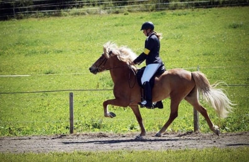 Nach langer Überlegung habe ich mich dazu entschlossen meine Islandstute zu verkaufen. Mánadis vom Panoramablick, Geb.: 2009 Sie ist immer eine verlässliche Partnerin in jeder Situation. Kennt Traktoren, Rinder, LKW‘s Sie ist 5 Gängig veranlagt von mir aber nur 4 Gängig geritten worden. Sie hat mittleres Temperament, geht gut Vorwärts ist aber in jeder Situation gut zu bremsen und immer klar im Kopf. Auch mit Kindern geht sie zuverlässig um. Sie ist Dressurmäßig weit ausgebildet. Kann Schulterherein, Renver und Traversalen im Schritt und im Trab. Sie hat flüssigen, leicht zu reitenden Tölt. Ich selber habe sie in der T7/T3 und V5/V2 sowie D3/D1 auf dem Turnier geritten. Sie ist im Moment tragend von Verdandi frá Arabae. Einem Vierganghengst. Sie kann nach Absprache auch mit dem Fohlen gekauft werden. Mánadis wird ab September wieder langsam antrainiert. Im Moment ist sie nicht geritten. Sie war immer gesund, wurde regelmäßig entwurmt und geimpft