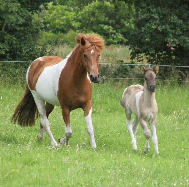 Very beautifully marked mouse dun pinto mare. She is very sweet and easy to handle. She shows a lot of tölt as well as a nice trot. We are happy to answer any further questions via email or WhatsApp at 01722846485.