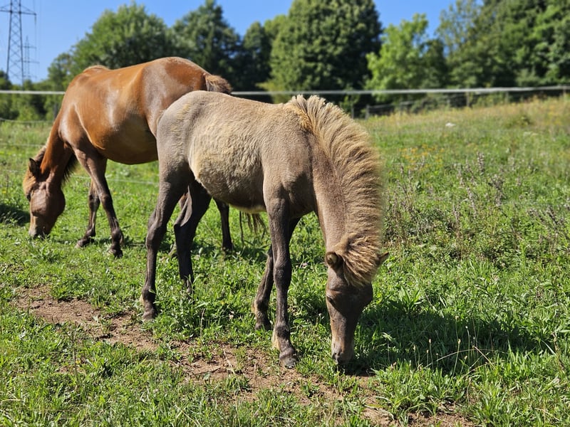 Sire: Glanni von der Norderheide (DE2013110559) Dam: Kolgríma frá Tungu (IS2014266051) Gaits: 5-gaited Kría is a 4-year-old, five-gaited Icelandic mare. She is not yet broken in, but she is well acquainted with all the basics: tying, trimming, brushing, leading, and lunging. She is calm and non-confrontational within the herd, sensitive, and responsive to her handler’s non-verbal communication. Kría shows a lot of promise for the future and would make a wonderful partner for someone who values sensitivity, willingness, and a kind temperament. Afdrif Afdrif is Kría’s 6-month-old colt. Ideally, I would like to see him move together with his mother to their next home, so that he can be weaned in peace. I’m trying to find them a home together. For both is price 5000€.