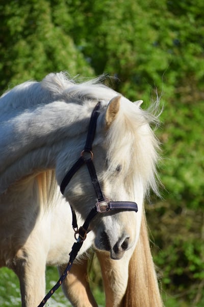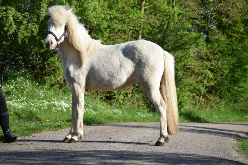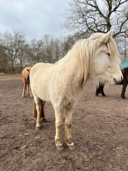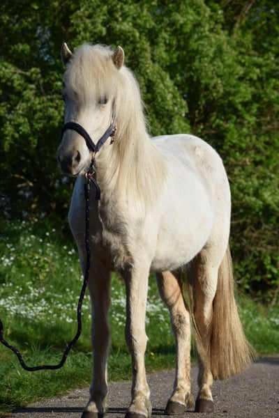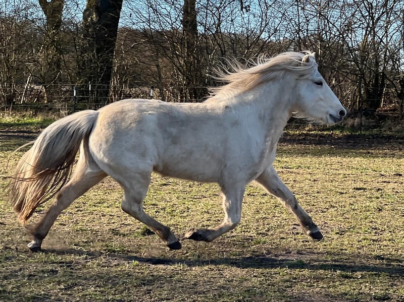 Kayla by Seimur, daughter of Sóley by Seimur, certified broodmare & the well-known Kjarkur by Seimur. She is 5 gaited and will reach a final height of approx. 1.44m. She already shows clearly separated, beautiful gaits and would be suitable for breeding, sport and leisure. Her color is called Fuchisabell (Palomino). Her temperament and character are impeccable and very calm. Kayla stands with her colleagues on the young mare pasture, 1 - 4 years old and next to the young stallions. Her pedigree can be seen. She can be viewed at any time. More details via PN.