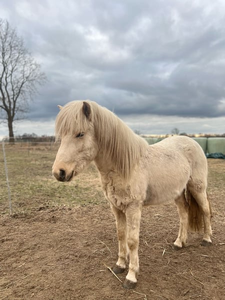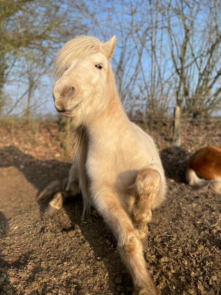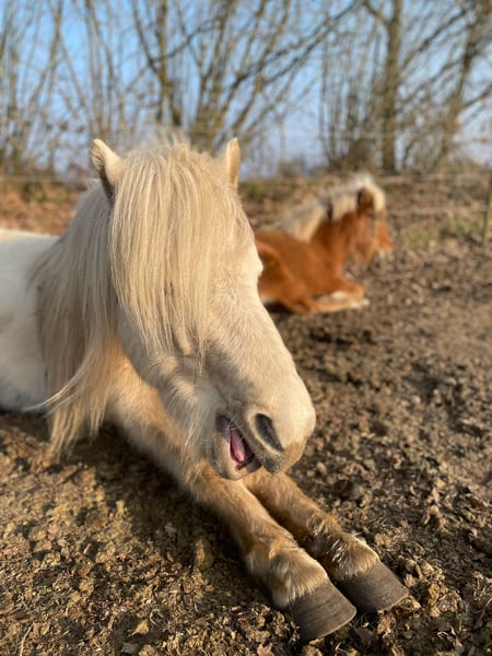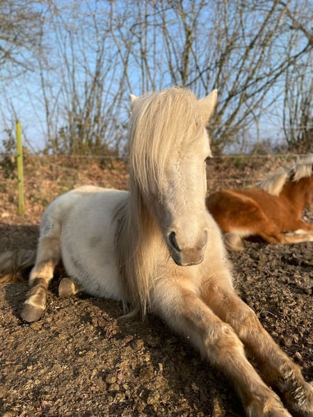 Kayla von Seimur, fille de Sóley von Seimur, poulinière certifiée et du célèbre Kjarkur von Seimur. Elle a 5 allures et atteindra une taille finale d'environ 1,44m. Elle montre déjà de belles allures bien séparées et conviendrait pour l'élevage, le sport et les loisirs. Sa robe s'appelle Fuchisabell (Palomino). Son caractère et son chat sont irréprochables et très calmes. Kayla se trouve avec ses collègues sur le pâturage des jeunes juments de 1 à 4 ans et à côté des jeunes étalons. Ses origines sont évidentes. Elle peut être visitée à tout moment. Plus de détails par PN.