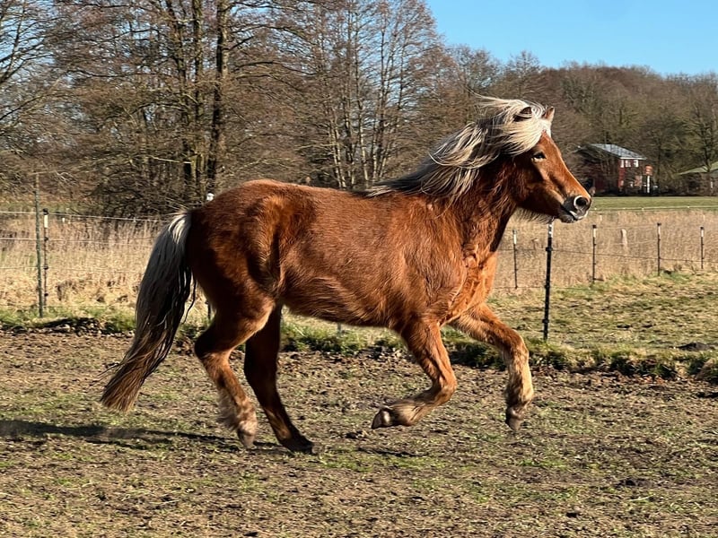 Naela von Seimur, fille de Nona von Seimur et Kjarkur von Seimur, avec d'excellentes origines ! Naela est une jeune jument très calme, ouverte à toutes les orientations, loisir, sport et élevage ! Elle serait une candidate pour le test des jeunes chevaux de 3 ans, elle a 5 allures. Ses allures sont clairement séparées et c'est déjà un plaisir de la voir galoper dans les prés ! Elle a un très bon caractère, est très gentille et sensible, un bon partenaire pour la vie. Elle atteindra probablement une taille finale d'environ 1,44m. Si vous souhaitez voir Naela en direct, venez nous rendre visite. Naela se trouve avec ses collègues dans le pré des jeunes juments, de 1 à 4 ans, à côté des jeunes étalons. Son pedigree peut être montré ! Plus d'informations sur demande.