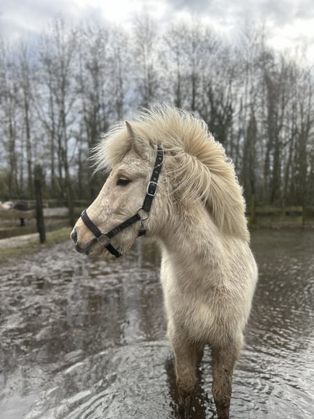 Prachtige jonge IJslandse merrie in een bijzondere ijsblauwe kleur zoekt een ervaren thuis. Ze is vier jaar oud en heeft nog niet veel ervaring – een echte ruwe diamant voor iemand met gevoel en ervaring in het omgaan met jonge paarden. Ze is momenteel 1,40 m groot, laat zich braaf poetsen, aan de longeerlijn vastmaken, leiden en geeft hoefjes. Meer opleiding heeft ze nog niet gehad, aangezien ze pas in december 2024 uit IJsland is gekomen. Waarschijnlijk is ze vijfgangig aangelegd, hoewel ze zich tot nu toe vooral in draf en galop heeft laten zien. Met de juiste training zal ze ongetwijfeld uitgroeien tot een bijzonder dressuurpaard voor de hogere vrijetijdssport.