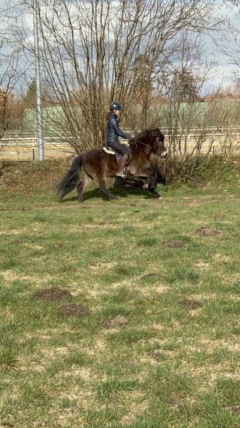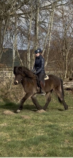 Kringla ist eine 2021 geborene Islandstute in der besonderen Farbe Dunkelerdfarben. Sie ist viergängig veranlagt und zeigt Tölt bisher in den Übergängen. Sie wurde bei uns im Rahmen des IPZV Jungpferdebereiters ausgebildet und zeigt sich gelehrig und motiviert. Sie kennt die Arbeit in der Halle, auf der Ovalbahn und im Gelände. Sie geht als Handpferd und an der Doppellonge. Kringla ist mutig und unerschrocken. Nach der dreimonatigen Grundausbildung muss sie weiter ausgebildet werden, wird aber sicher ein tolles Familienpferd. Durch ihre gute Abstammung und ihr korrektes Gebäude, ist sie auch für die Zucht interessant. Sie ist das letzte Jahr bei uns aufgewachsen und war immer gesund. Sie hat kein Ekzem. Kringla ist bereit, in ein neues Zuhause umzuziehen. Der Preis steigt mit weiterer Ausbildung.