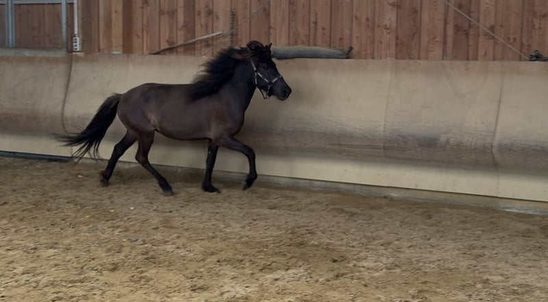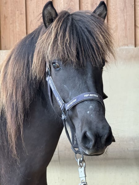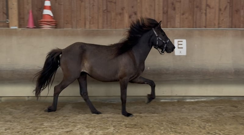 Karma von Möllenbronn is a young five-gaited mare born in 2021. She shows all five gaits freely and has a lot of potential for tölt. In handling, she is very open and curious towards humans. She is familiar with the halter and being led, and is currently growing up in a herd environment in a young horse group in a species-appropriate manner. Karma is healthy, naturally vaccinated and dewormed regularly. Karma's father is a very talented and large son of Aron frá Strandarhöfði. Her mother is a five-gaited daughter of Vidalin frá Hamraholi. We can very well imagine Karma as a perfect leisure partner later on, possibly also for some competitions.