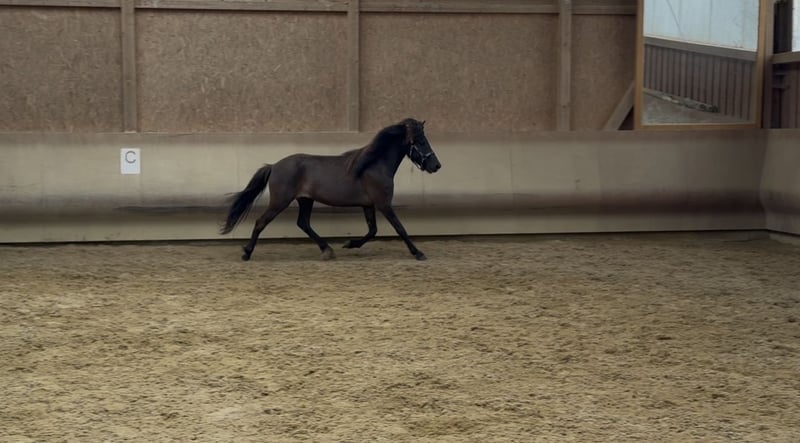 Karma von Möllenbronn ist eine junge fünfgängig veranlagte 2021 geborene Stute. Sie zeigt freilaufend alle fünf Gänge und hat viel Töltveranlagung. Im Umgang ist sie dem Menschen über sehr aufgeschlossen und neugierig. Sie kennt das Halfter und geführt zu werden und wächst aktuell im Herdenverband in einer Jungpferdeherde artgerecht auf. Karma ist gesund, natürlich regelmäßig geimpft und entwurmt. Karmas Vater ist ein sehr talentierter und großer Aron frá Strandarhöfði Sohn. Ihre Mutter ist eine fünfgängige Vidalin frá Hamraholi Tochter. Wir können uns Karma später sehr gut als perfekter Freizeitpartner vorstellen, eventuell auch für das ein oder andere Turniere.