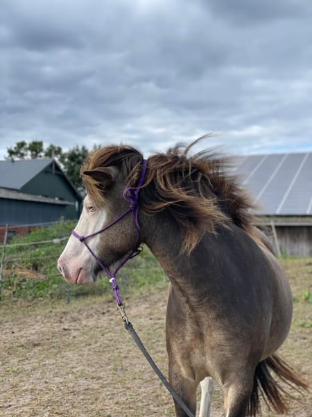 Eydes vom Terlindenhof, een 5-jarige merrie, wordt momenteel zadelmak gemaakt. Ze is erg mensgericht en wordt vermoedelijk viergangig aangelegd. Eydes is een zeer rustige jonge merrie die haar mens graag wil behagen. Ze zal heel gemakkelijk te rijden zijn, gaat ontspannen mee het terrein in en is geschikt voor recreatie en fokkerij. Haar bijzondere lakering is vooral opvallend, omdat deze zeldzaam is bij helmschecken. Wie Eydes graag wil leren kennen, kan haar te allen tijde komen bezoeken of meer informatie krijgen via een privébericht. Let op! Bij kredietcontrole bieden wij, bij een aanbetaling, ook de mogelijkheid tot gespreide betaling.
