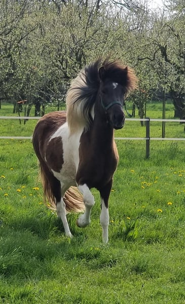 Evita ist eine wunderschöne Stute mit viel Potenzial für den Sport. Sie wurde von mir selbst gezogen (ihre Mutter ist ebenfalls noch vorhanden) und wurde im Alter von fünf Jahren eingeritten und weiter ausgebildet, mit Unterstützung eines erfahrenen Trainers. Mit vier Jahren hat sie ein Fohlen von Mafur fra Kjarri bekommen, was reibungslos verlief, sie ist eine sehr fürsorgliche Mutter. Evita ist wirklich ein Prinzessinnenpferd, sie liebt Aufmerksamkeit und genießt es, gepflegt zu werden. Außerdem ist sie keineswegs langweilig; sie zeigt deutlich, wenn ihr etwas zu spannend ist, vertraut aber ihrem Reiter/Betreuer, wenn dieser signalisiert, dass alles in Ordnung ist. Das macht sie jedoch ungeeignet für unerfahrene oder unsichere Reiter. Sie ist ein fünfgängiges Pferd mit großzügigen Bewegungen. Sie zeigt den Tölt selbst, ist aber noch nicht ausgebildet. Bei der Hufpflege ist sie brav und geht problemlos auf den Trailer. Auch unternimmt sie gerne Ausritte, obwohl sie das draußen noch etwas spannend findet, ebenso wie den Straßenverkehr. Sie ist bereit, wie man so schön sagt, um Kilometer zu sammeln. Leider komme ich durch Zeitmangel (mehrere Reitpferde) nicht dazu und finde, dass sie nicht die Aufmerksamkeit bekommt, die sie verdient. Ich suche für sie einen bodenständigen, klaren Reiter, der gerne mit ihr arbeitet und vielleicht Spaß daran hat, sie zu Wettkämpfen mitzunehmen. Bei der passenden Person ist der Preis verhandelbar.