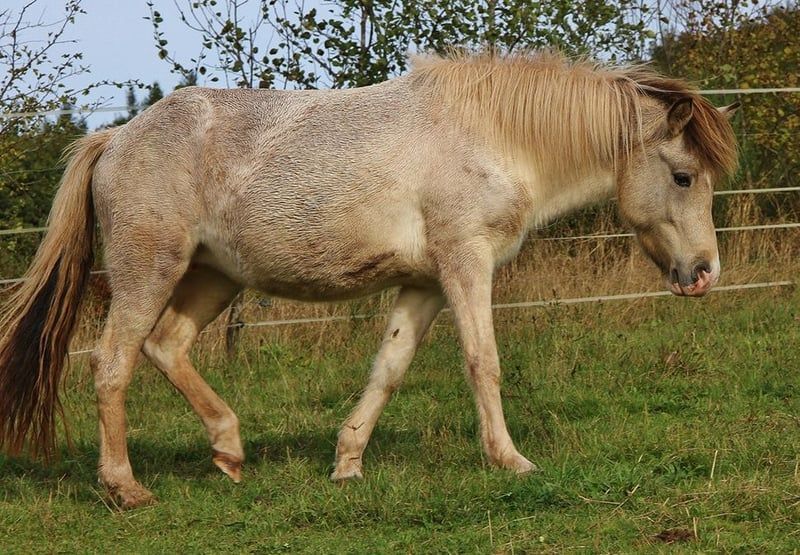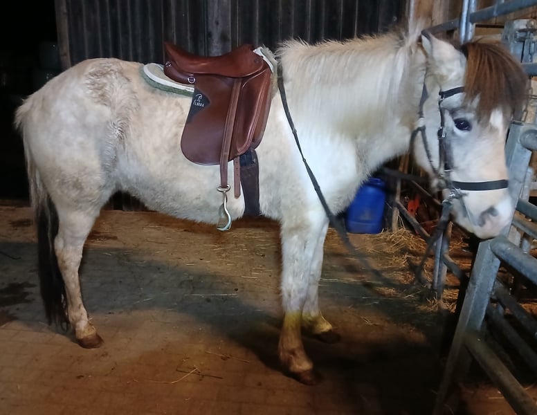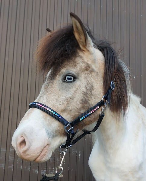 Fegurdardis ist bei mir geboren, war immer gesund, Ekzemfrei, ist gut sozialisiert aufgewachsen, war kurze Zeit in der Zucht und überzeugte mit sehr ansprechender Nachzucht. Da ich meine Pferde reduziere wurde sie dieses Jahr im Sommer angeritten, stand dann leider aus Zeitmangel wieder auf der Weide und wird seit kurzem wieder weiter Ausgebildet. Sie sucht ein Zuhause in dem man sie weiter Ausbilden und Fördern möchte. Bis dato wurde sie auf Vertrauensbasis angeritten. Zurzeit wird sie kurze Einheiten alleine ins Gelände in Schritt und Trab geritten. Sie ist dabei relativ gelassen und unerschrocken, reagiert sehr gut auf Stimmhilfen zum Gangwechsel und auch die Bremse funktioniert perfekt. Noch ist sie Barhuf, aber aufgrund der bescheidenen Wegesituation ist dies bei mir dauerhaft nicht möglich. Mit weiterer Ausbildung und Routine wird sie ziemlich sicher ein gehobenes Familienfreizeitpferd, welches auch für Kinder geeignet sein wird, mit Optionen auf Kurse, Wanderritte, Therapie, Sport etc.. Auch ein erneuter Zuchteinsatz ist jederzeit möglich. Fegurdardis bringt eine gute Größe von um die 139 Stm mit. Sie hat ein sportliches Exterieur mit robustem Fundament so das sie mich mit 75 kg sehr gut und ohne Probleme abdeckt. Ganglich ist sie Fünfgangveranlagt, es wurden schon alle Gänge Freilaufend gesichtet. Meistens bevorzugt sie ihre drei gut und sicher vorhandenen Grundgänge. Tölt ist öfters mindestens im Übergang zu sehen und auch beim Reiten manchmal schon etwas bei Gangwechsel zu merken, sie ist noch nicht eingetöltet und wählt zurzeit von sich aus unter dem Reiter den Trab. Was in der jungen Ausbildungsphase absolut okay ist, zudem finde ich den Trab bequem und gut zu sitzen. Pass wurde auch Freilaufend schon gesichtet ist aber nicht ihr favorisierter Gang. Daher kann lediglich im Galopp je nach Gelände manchmal die Fünfgangveranlagung erahnt werden. Charakterlich ist sie einfach ein unkomplizierter unartenfreier und gelassener braver Schatz. Steht brav beim Putzen und Aufzäumen, lässt sich Problemlos auch in den Pferdeanhänger Verladen und darin Fahren. Gibt brav Hufe, ist artig beim Tierarzt für Impfen und Tupferprobe. Und auch entwurmen lässt sie sich ganz easy. Mit ihrer seltenen Sonderfarbkombination in Erdfarbener Sparscheckung mit Stern, Schnippe und einem blauen Auge ist sie garantiert überall ein Blickfang. Und auch wer gerne Bunt mit ansprechender Qualität züchten möchte hat mit ihr eine perfekte Kombination. Sie ist durchgetestet bestätigt Erdfarbschecke mit Splash. Dadurch kann sie an ihre Nachkommen zu 50 % Creme, Splash und Tobiano vererben. Gerne kann Fegurdardis mit Termin persönlich kennengelernt werden. Ob ein Probereiten dann möglich ist werde ich individuell bei Kennenlernen entscheiden müssen, da ich in dieser jungen Berittphase nicht jeden Reiter unabhängig dessen Kompetenzen auf sie setzen möchte. Aktuell wird sie noch zu einem sehr fairen Preis abgegeben. Mit Beschlag und weiterer Ausbildung wird dieser aber entsprechend ihres Ausbildungsstandes angepasst. Bei echtem Interesse schreibt mich gerne an.