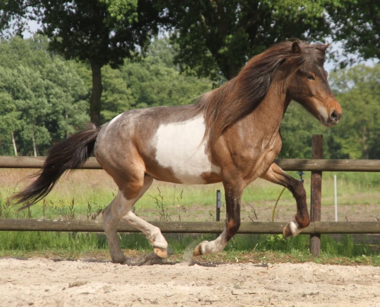 Fantasia van Hohen Holz is een zeer mooie sportieve merrie met goede basisgangen. Ze toont vrijlopend zowel tölt als draf in gelijke delen. Onder het zadel geeft ze momenteel de voorkeur aan tölt. Ze is pas dit jaar onder het zadel gebracht en bevindt zich momenteel nog in professionele training. Ze toont zich zeer leergierig en bravuurig. Ze kan graag proefgereden worden. Voor verdere vragen staan wij graag per WhatsApp 01722846485 of e-mail tot uw beschikking. Meer verkooppaarden vindt u op onze website www.roettgershof.jimdo.com