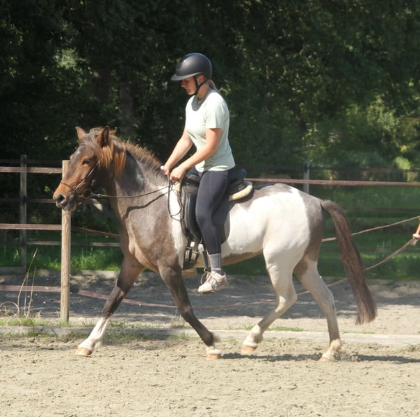 Fantasia vom Hohen Holz is a very beautiful sport horse mare with good basic gaits. She naturally exhibits a tölt and trot in equal parts. Under saddle, she currently prefers to perform tölt. She was only backed this year and is now being ridden at Wulfenhof (Dorsten), where she behaves calmly and reliably as a school horse. She is very trainable and well-behaved. She can be test ridden upon request. For further questions, please feel free to contact us via WhatsApp at 01722846485 or by email. More sale horses are available on our homepage www.roettgershof.jimdo.com