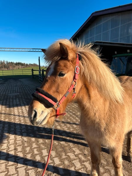 Hamingja is a very friendly and always motivated five-gaited mare. She is a daughter of the award-winning stallion Omur frá Kvistum. Hamingja has been lightly started under saddle and shows a lot of relaxed natural tölt. Already now, she has demonstrated promising pace tendencies. Under saddle, she is very well-behaved after a short time and always wants to do everything right. With further training, she is therefore also suitable for beginners. Hamingja is healthy and is kept with us in a mixed herd.