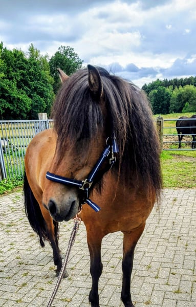 Ua zoekt haar mensen! Ua kwam twee jaar geleden uit IJsland, waar ze ook gereden werd. Helaas heeft ze de reis niet goed verteerd en is ze wat terughoudend tegenover mensen geworden. We hebben veel gewerkt aan haar omgang, maar de weg naar een rijpaard is nog een heel eind. In nieuwe situaties verstijft ze en wordt ze bang. Ze is echter nooit boos of onvoorspelbaar. Ze heeft een rustige eigenaar nodig die haar met geduld de wereld laat ontdekken. Ze vindt het leuk om met de longe te werken en communiceert heel fijn. Daarnaast heeft ze eczeem ontwikkeld, dat goed te behandelen is met een deken.
