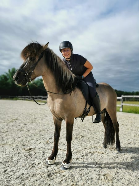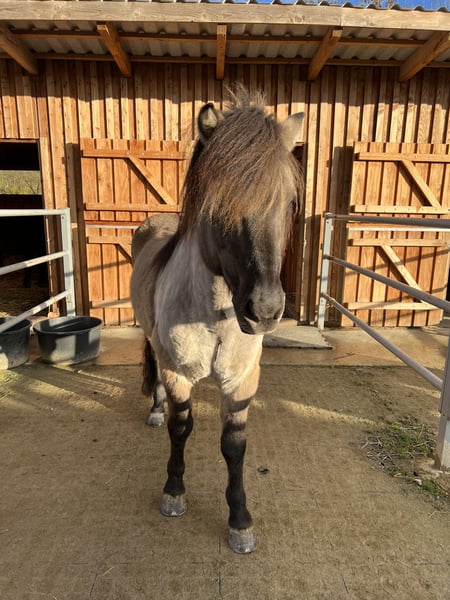 Stormur frá Stokkhólma – IS2011158988 Étalon expressif et performant de 5 allures avec un excellent caractère et une ascendance impressionnante. Stormur provient d'un élevage islandais éprouvé et se distingue par sa puissance, son élégance et son plaisir à être monté. Né en 2011, couleur : souris alezan, taille environ 146 cm. Évalué FIZO avec une note globale de 8,44 (conformation 8,37 – caractéristiques d'équitation 8,49 – 9,0 pour la forme sous le cavalier). Stormur séduit par sa mise en place naturelle, ses allures bien séparées et son tölt léger et énergique. Son caractère amical et équilibré en fait un véritable cheval de cœur – fiable, agréable à monter et toujours désireux de bien faire. En tant qu'étalon de reproduction, Stormur impressionne également : ses descendants montrent une qualité exceptionnelle, beaucoup d'expression et une prédisposition remarquable aux allures – une fille a été notée 9,0 pour ses proportions, son tölt, son galop et son aptitude à l'équitation. Stormur a un léger eczéma d'été, mais il est très facile à gérer. Stormur est idéal pour des cavaliers ou éleveurs ambitieux à la recherche d'un cheval particulier avec une excellente lignée et une base solide. À céder pour des raisons personnelles. Localisation : Mariapfarr (Autriche). Vidéos, photos et autres informations disponibles sur demande. Visite possible sur rendez-vous.