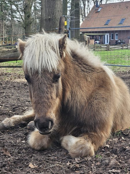 Te koop staat een uitzonderlijke IJslander × Classic Pony mix – een echt juweel Karlson, geboren in juni 2023, is momenteel nog een hengst. Voor een meerprijs van €400 kan hij vóór de aankoop gecastreerd worden. Hij springt niet alleen door zijn bijzondere kleur in het oog, maar overtuigt vooral met een goudkleurig karakter. Zo'n compleet pakket vind je echt maar eens in de spaarzame hoop. Karlson kent al het basis ABC van de jonge paarden, is halster- en longeerbaar, gaat betrouwbaar op de trailer, is smederij- en hoefbevangen en toont zich bijzonder kinderlief. Hij geniet ervan om gepoetst en verzorgd te worden. Vanwege zijn leeftijd is hij nog niet longeer- of bereden en is dus nog onrijp. Hij is een levendig, leergierig, speels en zeer intelligent paardje dat graag wandelt en met plezier nieuwe dingen leert. Schriktraining kent hij al en hij heeft al meerdere keren rustig en zelfverzekerd de trailerreis voltooid. Bij ons leeft Karlson in een groepje merries in een openstal met weidegang en hij staat daar in het midden van de rangorde. Hij is gezond, heeft nog nooit koliek gehad en is regelmatig ontwormd. De verkoop gebeurt uitsluitend vanwege tijdgebrek. Hoe moeilijk ik het ook vind, past Karlson helaas niet meer in mijn verdere levensplanning, en ik wil hem recht doen, wat ik momenteel niet in de mate kan doen die hij verdient. Het betreft nadrukkelijk geen noodverkoop. Karlson wordt alleen aan de allerbeste handen overgedragen, en een verkoop vindt alleen plaats als het 100% klikt. Bij vragen hoor ik het graag 😊
