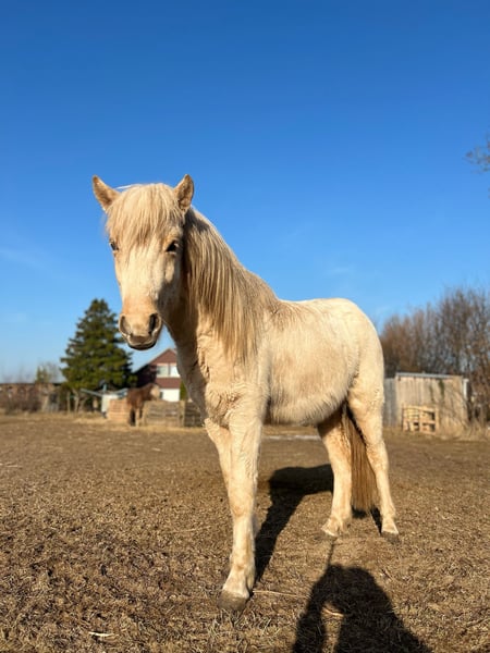 Sveidi von Seimur, ein Junghengst mit Zukunft! Wir bieten einen vielversprechenden Islandpferd-Hengst zum Verkauf an. Geboren im Jahr 2023, überzeugt dieser junge Hengst durch sein seine vielversprechende Abstammung, Sonderlackierung (Fuchsisabell/Palomino) und langen, vollem Behang. Mit einem Stockmaß von ca. 138 cm ist er bereits jetzt gut entwickelter und zeigt eine harmonische Körperhaltung, die auf eine vielversprechende Zukunft im Zucht/Tunier- oder Freizeitbereich hinweist. Der Hengst bringt die typischen islandpferdetypischen Eigenschaften mit: robuste Konstitution, ausgeprägte Trittsicherheit und ein freundliches Wesen. Seine aufgeschlossene Art und sein angenehmer Charakter machen ihn zu einem idealen Partner für Zuchtinteressenten, die Wert auf Qualität und Charakter legen. Dieses Islandpferd ist ein echter Rohdiamand, das durch seine genetische Vielfalt und sein Potential überzeugt. Bei entsprechender Förderung ist er bestens geeignet für die Zucht, aber auch für den Sport und Freizeitbereich, insbesondere für Reiter, die die Vielseitigkeit und den Charakter der islandpferdetypischen Pferde schätzen. Für weitere Informationen oder einen persönlichen Besichtigungstermin stehen wir gerne zur Verfügung. Dieses junge Islandpferd bietet eine hervorragende Gelegenheit für Zuchtbetriebe und Liebhaber der islandpferdeartige Pferde.