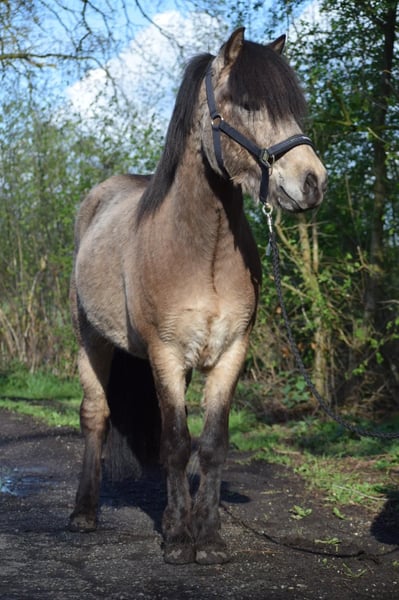 Keilir par Seimur, un étalon aux couleurs intéressantes et plein d'avenir. Sa robe s'appelle "isabelle brun argenté" (couleur terre). C'est un jeune étalon très calme, d'un caractère irréprochable, doté de 5 allures, le tölt est également en tête ! Sa taille finale sera probablement de 1,44m, ses origines sont top, sa mère, la jument d'élite Snót von Seimur, son père le célèbre Kjarkur von Seimur. Son oncle, l'étalon d'élite Stakkur von Seimur, sa grand-mère la légendaire Naela vom Adlerhop etc... Il faut simplement le connaître, il devrait être présenté à 5 ans, Fizo, monté. Mais aussi très intéressant comme étalon reproducteur. Il se trouve avec les jeunes étalons de 1 à 4 ans dans nos pâturages, à côté des jeunes juments. Il peut être utilisé comme étalon reproducteur, mais aussi pour le sport et les loisirs. Plus de détails par PN.