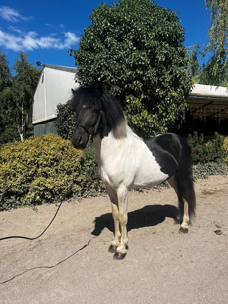 Ári ist ein sechsjähriger, sportlich und stabil gebauter Hengst mit einer ganz besonderen Ausstrahlung. Sein schwarz-weißes Fell, der feine, hübsche Kopf und sein wacher, präsenter Blick sorgen dafür, dass man ihn nicht übersieht! Spätestens dann nicht mehr, wenn er die Ovalbahn betritt. Dort versteht er es, sich zu zeigen, mit ansprechender Bewegungsweite und schöner Bewegungshöhe, die sofort ins Auge fällt. Ári wird aktuell viergängig geritten. Seine Gänge sind klar getrennt und durchweg leicht am Zügel zu reiten. Besonders hervorzuheben ist sein Tölt, der mit gutem Takt bis ins mittlere Tempo abrufbar ist und eine hohe Sitzbequemlichkeit bietet. Der Trab ist sicher abrufbar, taktklar und mit einer schönen Schwebephase ausgestattet, während der Galopp mit guter Bergauftendenz ein angenehmes Reitgefühl vermittelt. Insgesamt ist Ári ein kooperativer, fein zu reitender Hingucker, der nicht nur auf der Ovalbahn, sondern auch im Gelände viel Freude bereitet. Sein Potenzial ist dabei noch längst nicht ausgeschöpft. Ári ist ein Pferd für Menschen, die Freude daran haben, ein talentiertes Jungpferd weiter zu formen, zu fördern und gemeinsam wachsen zu lassen. Er wurde im vergangenen Jahr bei uns am Betrieb schonend angeritten und befindet sich aktuell zur weiteren Ausbildung bei uns, bis wir das passende Zuhause für ihn gefunden haben. Mit entsprechender Förderung ist Ári problemlos für Reitabzeichen, Trainerscheine und auch kleinere Turniere geeignet. Er bringt dafür nicht nur die nötige Qualität, sondern auch die passende Einstellung mit. Im Umgang zeigt er sich ausgesprochen angenehm und unkompliziert. Trotz seines Hengststatus ist er sehr verträglich, aufmerksam und höflich. Am Putzplatz steht er ruhig und gelassen, sodass man im täglichen Umgang kaum merkt, dass er noch Hengst ist – selbst inmitten von Stuten und Wallachen. Ári ist ein Pferd mit Präsenz, Qualität und Entwicklungsmöglichkeiten – ideal für Reiterinnen oder Reiter, die ein sportliches, ehrliches Pferd suchen, das noch nicht fertig ist, aber alles mitbringt, um genau das zu werden.