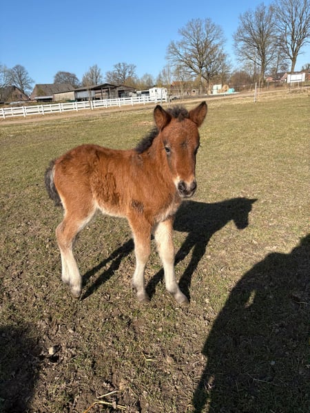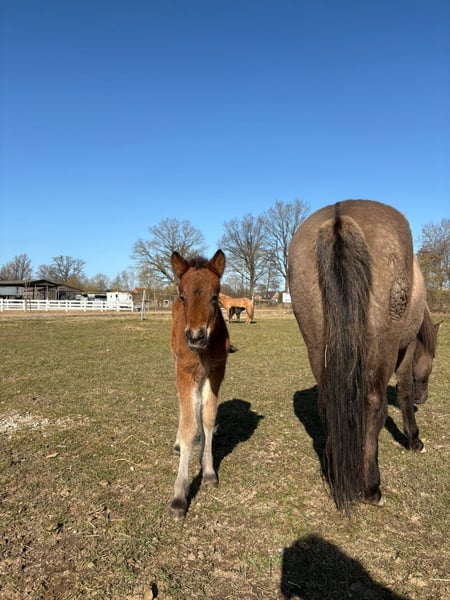 Gulltoppur überzeugt bereits jetzt durch einen sehr typvollen Auftritt, kräftigen Körperbau und viel Bewegungsfreude. Schon in jungen Tagen zeigt der kleine Hengst schöne, raumgreifende Bewegungen und viel Tölt, was auf ein vielversprechendes Potenzial für die Zukunft schließen lässt. Abstammung: Die Mutter Galtroppa vom Kranichtal stammt aus einer interessanten Elternlinie mit Naddur vom Schluensee und Glæsa vom Kranichtal. Sie ist eine sehr große, ausdrucksstarke Stute und hat ihre Qualität bereits in der Zucht bewiesen. Im Jahr 2024 brachte sie das Elitefohlen Gantroppa vom Kranichtal hervor. In ihrer Mutterlinie findet sich außerdem der Weltmeister Laxness vom Störtal, was diese Abstammung zusätzlich besonders interessant macht. Der Vater ist Merkur vom Maischeiderland, ein ausdrucksstarker Hengst mit sehr guter Gangveranlagung und viel Präsenz. Er überzeugt durch schöne Bewegungen, gute Töltqualität und starken Charakter und gibt diese Eigenschaften zuverlässig an seine Nachkommen weiter. Zudem stammt er aus einer ekzemfreien Linie. Gulltoppur vereint damit Typ, Größe, Bewegung und interessante Blutlinien und zeigt schon jetzt beste Anlagen. Bei Interesse freuen wir uns über Ihre Nachricht. Neben Gulltoppur stehen bei uns auch noch viele weitere Pferde zum Verkauf. Kontaktiere uns gerne, um einen Kennenlerntermin zu vereinbaren, gemeinsam finden wir das richtige Pferd für Dich!