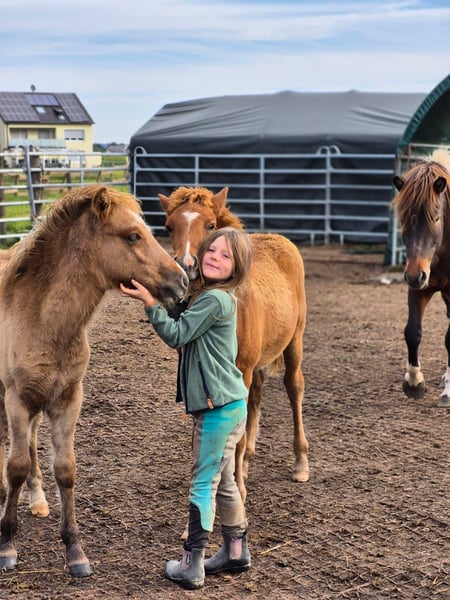 Elskandi, zeigt alle Gänge, klar getrennt, er wächst artgerecht im Herdenverband auf, kennt Schmied und Fohlen ABC,ist regelmäßig entwurmt und gegen Tetanus geimpft.