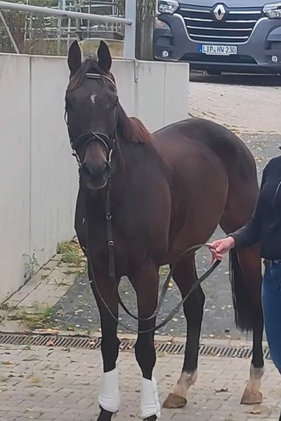 Caballo castrado de 10 años, aproximadamente 168 cm de altura, que ya ha logrado éxitos en el deporte y ha demostrado su talento. Dinámico en los saltos y dotado de la mejor técnica. También supera muy bien los obstáculos fijos en el campo. Por lo tanto, es muy interesante para jinetes de salto o de caza. Por circunstancias, se ofrece a un precio muy por debajo de su valor en las mejores manos. Si lo desea, se puede entregar con un nuevo equipo completo por un costo adicional. Se puede organizar el transporte. La revisión veterinaria de compra también puede ser realizada por su propio veterinario, incluyendo radiografías y análisis de sangre. Esperamos su llamada al 01774289729. No se responderán consultas por escrito.