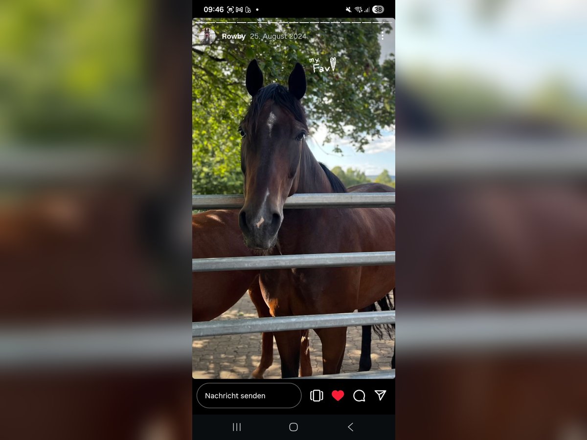 Il nostro Rowby ha dovuto interrompere la sua carriera nella scuola di equitazione, poiché dopo un intervento ai tendini e trattamenti con onde d'urto non è più in grado di sostenere sforzi intensi. È socievole, in ottima salute, con ferrature anteriori, ed è naturalmente vaccinato e sverminato. Rowby ha bisogno del suo proprietario e di spazio sufficiente. È possibile fare passeggiate a mano.