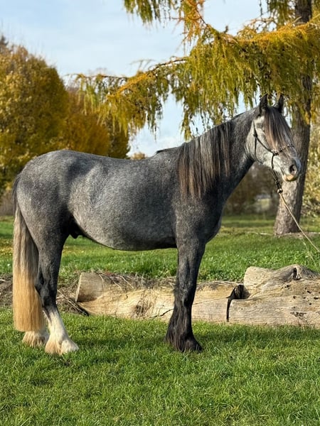 Irish Sport Horse x Irish Cob Wallach, wird 5 Jahre und ist zur Zeit ca. 1,60 m groß. Ein unkomplizierter Allrounder für Freizeit & gehobenen Freizeitsport. Dieser bildhübsche ISH-x-Cob Wallach verbindet das Beste aus zwei Welten: sportliche Anlage, tragfähiges Fundament und ein Herz, das einfach gefallen will. Gelassen im Kopf, freundlich im Umgang, genau der Kumpel, mit dem Reiten leicht wird. Steckbrief • Irish Sport Horse x Irish Cob • Wallach, wird 5 Jahre • aktuell ca. 1,60 m • longiert und vom Profi alters- & pferdegerecht angeritten • geeignet für Freizeit bis gehobener Freizeitsport • super brav, gelassen, verspielt, möchte seinem Menschen gefallen • im großen Herdenverband aufgewachsen, gut sozialisiert, mit jedem verträglich • kennt Herdenhaltung sowie Box mit Paddock • kleine AKU ohne Befund vorhanden, regelmäßig entwurmt, ekzemfrei, barhuf • schmiedefromm, verladefromm, Equidenpass vorhanden • auf Wunsch kann ein neuer passender Westernsattel mit erworben werden • weitere Ausbildung bei uns möglich Warum er begeistert Er bringt die lässige Ruhe des Cobs und die sportliche Reaktionsbereitschaft des ISH mit. Ein verlässlicher Partner, der trittsicher, kooperativ und angenehm zu sitzen ist. Er lernt schnell, bleibt cool im Kopf und macht es leicht, zu Vertrauen. Ideal für Reiter, die entspannt ins Gelände möchten, Spaß an der Arbeit haben und einen ehrlichen Charakter schätzen. Er befindet sich in solider Grundausbildung. Kontinuierliche, pferdegerechte Weiterförderung sichert seinen tollen Weg zum besten Freund. Probereiten & Kennenlernen nach Absprache erwünscht. Uns ist ein passendes Match wichtig. Bei Interesse bitte anrufen TEL 01709343872 Für einen Besuchstermin mit Probereiten berechnen wir 35€ . Bei Kauf des Pferdes wird der Betrag selbstverständlich erstattet.