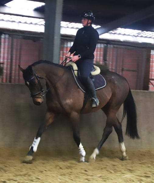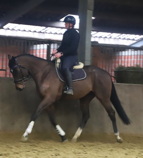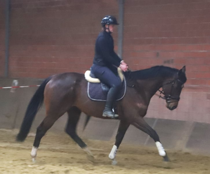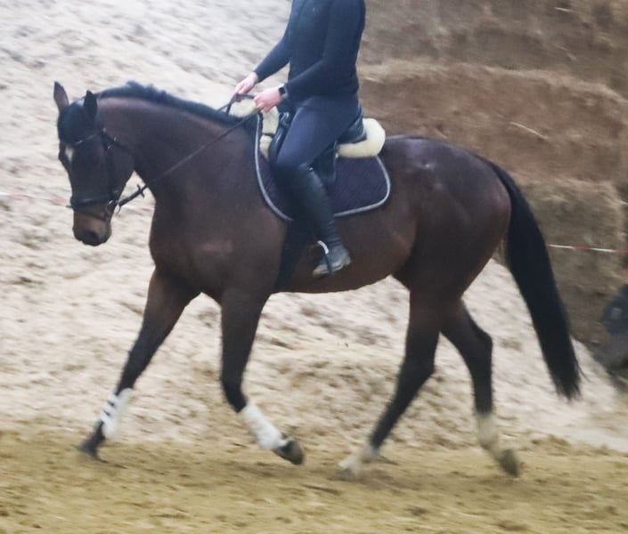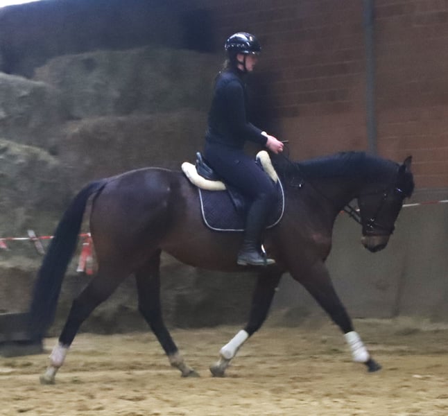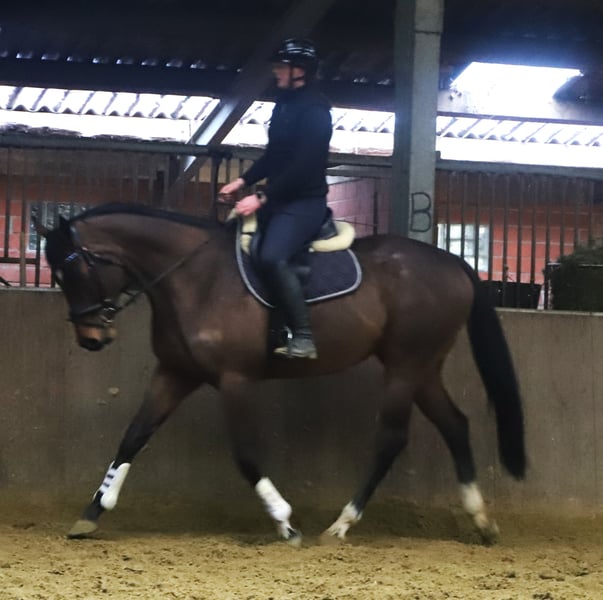 Storm is a 5-year-old gelding with an excellent temperament and three good basic gaits. Whether in the dressage arena or out on the trails, Storm is truly a gem. He makes it easy for his rider to understand him and provides a wonderful riding experience. Additionally, he has been introduced to small jumps. Standing at 16.1 hh and compact in build, he is an all-around fantastic horse for hobby riding, leisure, and school use. For the presentation of our horses, we charge a fee of €20.00; we kindly ask for your understanding. A current veterinary health certificate is available.