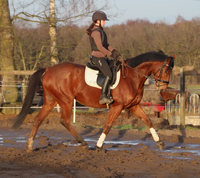 Belief ist ein 6 Jahre alter sehr braver und Menschenbezogener Wallach , belief besitzt keine Unarten ist brav und ehrlich im Umgang . er steht zur zeit auf teilbeschlag kann aber auch ohne eisen , aktuell lebt er in einer gemischten Herde im Offenstall kennt aber auch die Boxenhaltung . Aktuell hat Belief ein Stockmaß von 164 cm . Reiterlich gesehen ist er auf ein guten E Niveau geht sehr gerne ins Gelände dabei wirkt er sehr brav und unerschrocken auch wurde er schon mit kleinen Hindernissen vertraut gemacht alles in einen ein tolles Freizeit und Familienpferd .