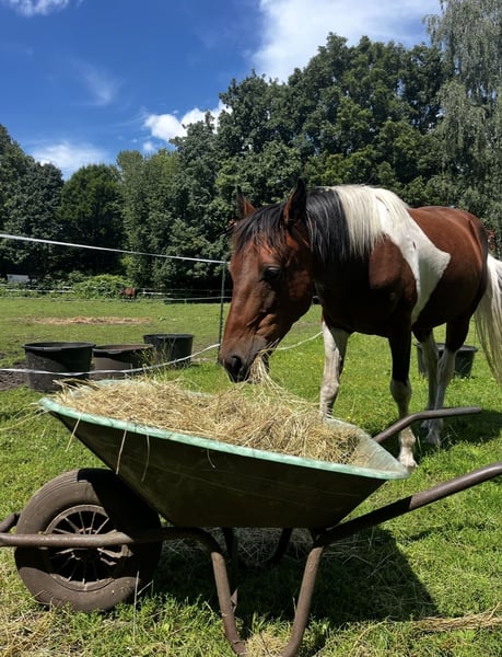 Na początku: Nie trafi do handlarza ani do trzymania w pojedynkę, szukamy dla niego najlepszego domu, niezależnie od czasu, jaki to zajmie. To nie jest sprzedaż pilna. Z ciężkim sercem szukam nowego, stałego domu dla mojego 8-letniego ogiera mieszańca (prawdopodobnie irlandzki traber). Ma około 149 cm wzrostu i jest ze mną od dwóch lat. Dotychczas był trzymany w trzyosobowej grupie w naszym otoczeniu. Od około miesiąca stoi w boksie. Tam radzi sobie dobrze, ale mam wrażenie, że byłby szczęśliwszy na pastwisku. W naszej grupie pełnił funkcję lidera i był dominujący. Przy zakupie był mi przedstawiany jako koń do jazdy i zaprzegu. Jeździliśmy na nim kilka razy przed moją ciążą, od dłuższego czasu nie był jednak używany w pracy. Pod siodłem pokazywał dotychczas chód i coś w rodzaju pasa i rasy pasa. U kobiety, która go dla mnie jeździła, również galopował. Nie wiem, czy potrafi galopować na własnych nogach. Kilka razy jeździłam z nim w terenie i był odważny, nie przestraszył się niczego. Sam nie jeździłam na nim w terenie. Mogę jednak wyobrazić sobie, że przy odpowiednim szkoleniu mógłby być interesujący również w sporcie zaprzegowym, choć nie mogę tego zagwarantować. Podejrzewam, że w swojej przeszłości nie był odpowiednio lub wystarczająco wytrenowany. Nie wykazuje solidnej podstawowej edukacji i na przykład nie zna klasycznego lonżowania. W kontaktach z ludźmi jest bardzo grzeczny i współpracujący, zarówno u kowala, jak i u weterynarza. Podczas czyszczenia jest często spokojny, choć czasami może się zdenerwować. W niektórych sytuacjach rozkłada uszy i grozi, dlatego potrzebuje doświadczonej, pewnej siebie osoby, która wyznacza jasne granice i pracuje z nim spokojnie i konsekwentnie. Nie jest to koń dla początkujących ani dla dzieci, lecz dla doświadczonych osób, które są gotowe zacząć od nowa z cierpliwością i wiedzą. Życzę mu kochającego domu na całe życie, w którym będzie mógł się zadomowić i być indywidualnie wspierany. Zapoznanie się z nim możliwe jest w każdej chwili po wcześniejszym umówieniu. Jazda próbna jest obecnie ograniczona ze względu na dłuższą przerwę w treningu. Przy poważnym zainteresowaniu proszę o kontakt z krótkim opisem siebie. Obowiązuje zasada: miejsce przed ceną. Bob to naprawdę świetny koń, jeśli tylko ktoś poświęci mu czas i jasno wyznaczy granice. Ma ogromny potencjał, by stać się wymarzonym koniem!