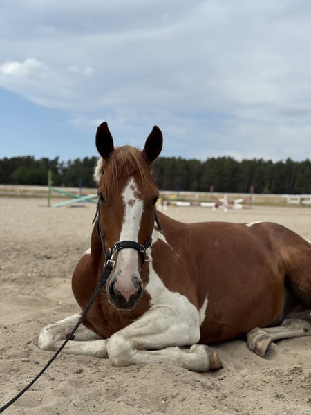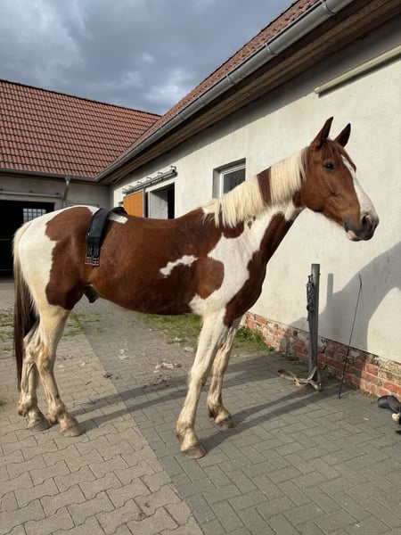 5 Sterne Zuhause gesucht Schweren Herzens haben wir uns dazu entschieden, für unseren Valero ein neues Zuhause zu suchen. Es ist uns besonders wichtig, dass wirklich alles passt und wir auch wenn möglich weiterhin Kontakt zu ihm haben können. Platz vor Preis! Valero ist ein 8 jähriger irischer Wallach mit einem roten Pass. Er ist ca. 1,60m groß und hat einen super lieben Charakter. Er ist verspielt, sehr anhänglich und immer lieb im Umgang. Außerdem geht er sicher durch den Straßenverkehr und ist auch im Gelände immer zuverlässig. Er hat Spaß daran neue Tricks zu lernen und macht jeden Quatsch mit. Unterm Reiter zeigt er sich stets motiviert, arbeitet gut mit und ist sehr lernwillig. Bei uns wird er hauptsächlich dressurmäßig gearbeitet, da ihm das Springen aufgrund seiner Hinterhand nicht so liegt, wobei auch das ihm trotzdem großen Spaß bereitet. Er braucht einen zuverlässigen Reiter der weiß was er tut und ihn weiter fördern kann. Er ist kein Anfängerpferd und sein Reiter sollte konsequent, jedoch immer fair sein. Wenn man da dran bleibt, kann ich es mir durchaus vorstellen, dass man mit ihm mal eine kleine Dressur starten kann. Bei ernsthafter Interesse freuen wir uns über eine Nachricht.