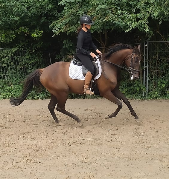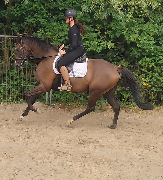 Talented athlete with charm and character at the prime age of 7 years and an ideal height of approximately 168 cm. In dressage work, he shows himself to be extremely talented, but he also impresses with great style and technique over jumps. He has a rideable, sensible character. We can very well imagine this horse in eventing or for hunting purposes. It is also interesting for motivated leisure riders who enjoy riding sportily and are looking for more than just an average horse. If needed, he can be sold with complete new equipment for a small additional fee. Trade-ins and transport are possible. A veterinary pre-purchase examination can also be conducted by your own veterinarian, including X-rays and blood tests. We look forward to your call at 01774289729. Written inquiries will not be answered. Calls from withheld numbers will be automatically rejected.
