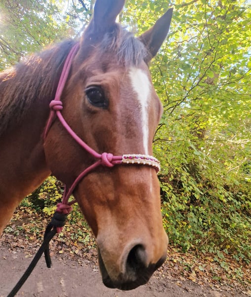 Liebevolle, anhängliche und sehr menschenbezogene Stute, 9 jährig, ca. 1,60m groß, Irish Leasure Horse, absolut lieb und unkompliziert im Umgang Ich habe sie selbst erst vor kurzem gekauft, leider haben sich nun kurzfristig Dinge entwickelt, die vorher nicht abzusehen waren. Sie wurde mir als voll belastbares Reitpferd verkauft. Nach Rücksprache mit einer Therapeutin wird sie das nach gutem Aufbautraining auch sein können. Bei der Vorbesitzerin wurde sie vor ein paar Monaten noch geritten, bei mir bis jetzt wegen fehlender Muskulatur nicht, ich bin sie allerdings Probe gritten vor wenigen Wochen. Ich selbst habe sie ohne AKU gekauft, vor gut eineinhalb Jahren war eine kleine AKU völlig unauffällig. Dolly braucht inzwischen einen orthopädischen Beschlag vorne, da sie sehr flache und auch weiche Hufe hat. Mit dem Beschlag läuft sie gut. Näheres gerne im Gespräch. Auf Grund fehlender Muskulatur ist im Moment kein Probereiten möglich. Preis versteht sich inklusive Sattel, Trense und Decken. Es gilt absolut Platz vor Preis.