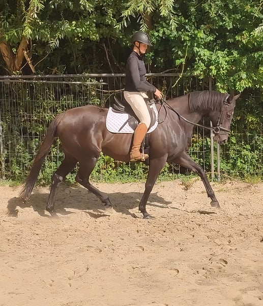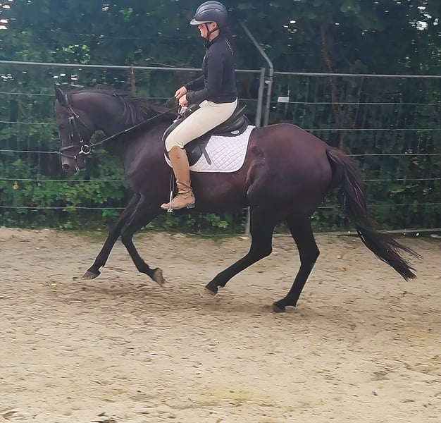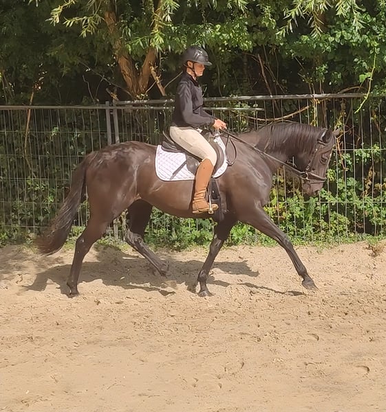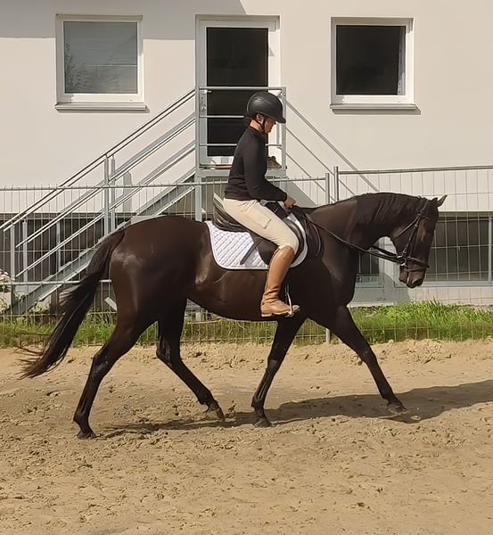 With this stylish black mare, pictures say more than many words. At 10 years old, she is in the best, most mature age. Very easy to ride. She makes even less experienced riders look good. She understands and forgives rider mistakes. In terms of character, she is an absolute gem with a need for long cuddling sessions. Trade-ins and transport are possible. If needed, she can be sold with complete new equipment for a small additional fee. A veterinary purchase examination can also be conducted by your own veterinarian, including X-rays and blood tests. We look forward to your call at 01774289729. Written inquiries will not be answered.