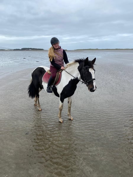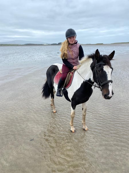 Night is a 13yo mare 155cm Full recorded Irish Sporthorse pedigree 🍀 Sire Atlantic Cruise Damsire The Artist Simple, hobby horse type. She has done beach rides, hacking and basic arena schooling. Quiet to tack up, mount, and ride. Good with traffic and farm machinery. Simple, easy mare with a quiet nature. Very suitable happy hacker or hobby horse. Price €3,800 Located in Sligo, Ireland. Regular professional transport available if required. For further information or videos please contact Edward on 00353871412129. All enquiries welcome.