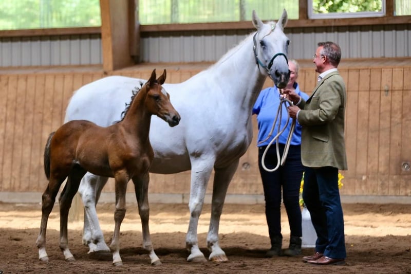 Solo is a purebred Irish Draught mare with 16% Thoroughbred blood, imported from Ireland 14 years ago. She is registered in Section A of the Irish Draught Horse Studbook (green passport) and has been listed with Holstein Global since 2022 and with ZSAA since 2023. When covered by a Holsteiner stallion, the foal is registered as a Holsteiner. If bred to a ZSAA-registered stallion, registration as a German Oldenburg is possible. Solo has a very harmonious conformation, an expressive trot, and a soft, ground-covering canter. She is very rideable and passes on her wonderful temperament to her offspring. Her sire, Crosstown Dancer, is the only horse to have won the Dublin Horse Show four times. From Solo’s grandsire, Clonfert, comes It’s the Quiet Man, who won the Dublin Horse Show in 2005. Solo is suitable for breeding sport horses, including hunters, show jumpers, eventers, and versatile leisure horses. With Solo, we have produced five foals: two pure Irish Draughts (Celticcross Dancer and Celticcross Bouncer), as well as Earls Pride (ISH, sire: Grafenstolz), Celticcross Pearl (Holsteiner, sire: Uriko), and Han Solo (German Oldenburg, sire: Herzensbrecher). Han Solo has been awarded a 2-star premium at foal licensing. Celticcross Dancer was Reserve Champion at the Wicklow Horse Show in 2009. All her foals are very correct, rideable, and carry the wonderful temperament typical of Irish horses. Photos of the offspring can be found in the gallery. The video shows Solo with Han Solo at the licensing in August 2023.