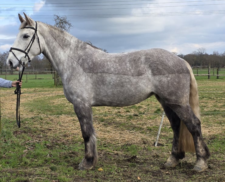 Heather is momenteel een Irish Draught merrie van 159 cm. Ze zal waarschijnlijk nog wat groeien. Zoals gebruikelijk voor haar ras, heeft ze een goede basisopleiding en past ze ook uitstekend bij grote ruiters. Heather is sterk en veelzijdig inzetbaar. Heather kwam rechtstreeks van haar fokker naar ons. Ze is vorig jaar voorzichtig aangezad en was uitsluitend in het bos actief. Zoals op de foto's te zien is, komt ze direct van de kust en werd daar regelmatig aan zee gereden. :-) Sinds haar komst bij ons wordt Heather dressuurmatig getraind in de binnenbak. Ze beschikt over drie goede, degelijke basisgangen en is goed te rijden. Hoewel het misschien niet meteen opvalt, is Heather ontzettend licht te rijden. Haar karakter is uniek; ze is zo'n lieve en makkelijke merrie. Heather is echt betoverend, Irish Draughts zijn gewoon zulke coole en nerveus sterke paarden. We blijven er telkens weer van onder de indruk. Heather is een allrounder, ja, het meisje kan ook goed springen. ;-) Voor meer informatie, we horen graag van u via telefoonnummer: 0177/2721831. Bent u geïnteresseerd in video's? Stuur ons dan gerust rechtstreeks via WhatsApp. :-)