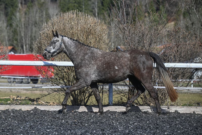 Gwenhwyfar ist eine dem Menschen sehr zugewandte, absolut unkomplizierte Stute, die seit sie mit 6 Monaten aus Irland kam, bei uns im Herdenverband mit 365 d Koppelgang aufgewachsen ist. Sie ist schmiede- und verladefromm, verkehrssicher, rglm geimpft und entwurmtund vor 3 Wochen o.b.B. komplett durchgerannt worden. Aufgrund ihrer Abstammung und ihrer Doppelveranlagung für die Vielseitigkeit prädisponiert. Entsprechend ihres Alters letzten Sommer schonend angeritten, über den Winter pausiert, zeigt sie sich jetzt wieder voll motiviert. 3 super Grundgangarten, Vermögen und Übersicht am Sprung, im Handling unkompliziert und gelassen, zeigt sie unter dem Reiter ausreichend Go. Aufgrund ihres tollen Charakters auch für ambitionierten Amateur geeignet!