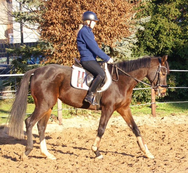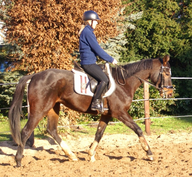 Liebe sportliche Stute mit schick und schöner Trabmechanik, brav angeritten, lieb im Umgang, gesund, volles Papier, Potential für Hobby aber auch für Sport