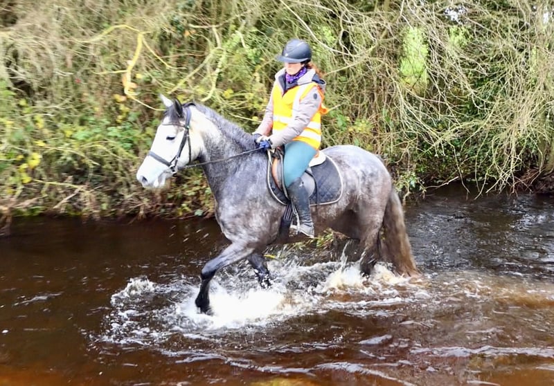 Tracey – Exceptional 5-Year-Old Traditional Irish Sport Horse Mare Tracey is a highly talented 5-year-old traditional Irish Sport Horse mare, currently standing at 15.3 hh, with ample potential to grow to 16 hh. She is a high-quality young mare with a fantastic attitude and all the qualities necessary for a successful sporting career. She is excellently bred: her sire is the Irish Draught stallion Longwood Dunbelievable, and her dam is the Connemara mare Helen’s Lady, by the outstanding stallion Classiebawn Hugh’s Promise. This combination gives Tracey athleticism, bravery, and excellent rideability. Tracey is an extraordinary show jumper. She is cautious, honest, quick, and very clever, with excellent technique over fences. She independently assesses distances and provides the rider with a great feeling. She currently jumps confidently up to 90 cm courses and shows enormous potential in free jumping – clearing obstacles up to 1.20 m with plenty of scope and air. Additionally, she has three very good basic gaits and a soft mouth in a snaffle bit, making her very pleasant to ride on the flat as well. She is forward-going without becoming overly strong or tense. Tracey loves her work and is eager to learn new things. She is a true pleasure to ride both jumping and cross-country – an incredibly fun mare for a confident rider looking to develop a young horse. Tracey is ready to start her competition career and is well-suited for show jumping, eventing, or versatile all-round riding at an ambitious level. Character & Handling - Soft mouth - Hacks alone or in company - Traffic safe - Easy to shoe, load, catch, and ride - No stable vices - Open to any veterinary examination Tracey is an honest, talented, and extremely pleasant mare with a bright future ahead. Price includes delivery to your stable in the UK. Exchange possible if you're not satisfied. Watch the video below. Phone: +353 86 807 7626 Email: gertytynan@gmail.com
